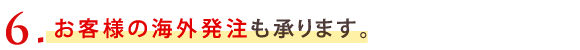 お客様が欲しい商品で弊社に在庫が無い商品、また数量がまとまる商品、 他店では扱ってないような商品につきましては、お客様にお見積もりを提示し、ご注文を頂いたのち、弊社が海外発注し納品させていただきます。