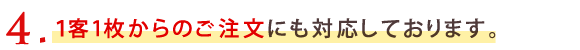 4.全ての商品は1客・1枚からご注文ができる。大規模イベント・セール等での
